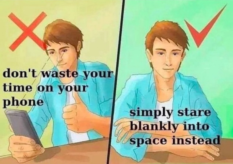 L’idée de ce même est pour moi soulever avec humour la problématique du déclin des activités possiblement offertes et appétentes dans leur environnement. Cependant, je ne doute pas que certain l’utilise pour dire que les RS sont mieux que rien, comme si l’être humain savait rester sans rien faire…