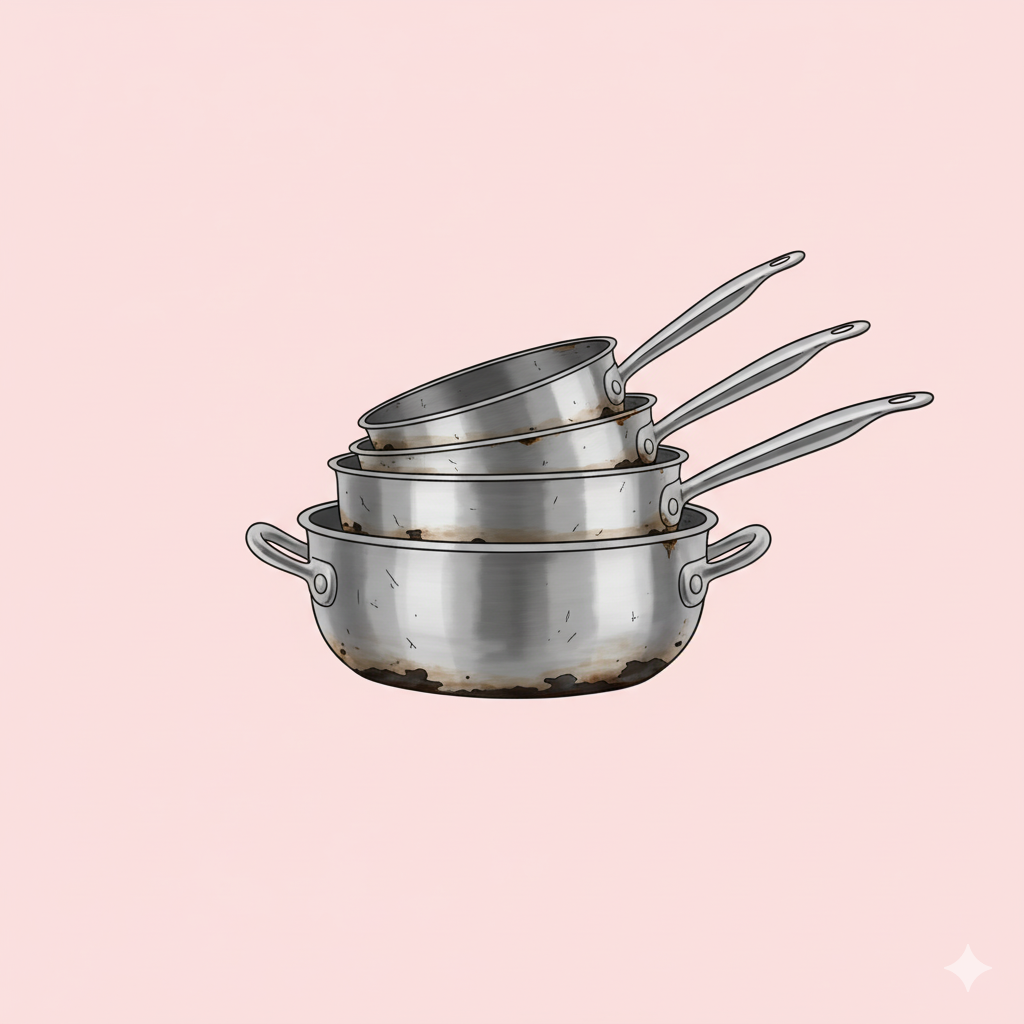 - Des vieilles casseroles (inox, fonte, aluminium épais…)