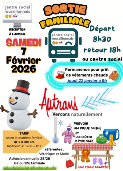 Au Centre Social et Culturel du Roussillonnais, nous sommes convaincus que les loisirs et la découverte de nouveaux horizons doivent être accessibles à chaque famille. C’est pourquoi nous avons co-construit cette sortie avec des tarifs solidaires, indexés sur votre quotient familial. Que nous soyons des habitués de la glisse ou que nous découvrions la neige pour la première fois, l’important est de vivre cette expérience côte à côte. Autrans, avec ses paysages apaisants et ses espaces sécurisés, est le terrain de jeu idéal pour nos aventures collectives.