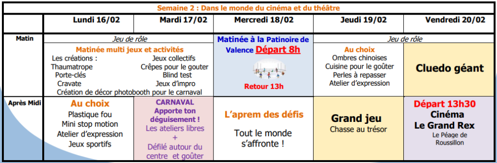 Nous encourageons chacun à apporter son déguisement pour un défilé festif autour du centre, suivi d’un goûter partagé. Pour clore ces vacances en beauté, nous nous rendrons au cinéma Le Grand Rex pour un moment de partage devant le grand écran et un Cluedo géant qui mettra à l’épreuve nos talents d’enquêteurs.
