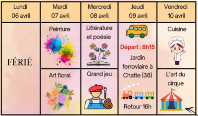 Au Centre Social et Culturel du Roussillonnais, nous croyons que chaque enfant porte en lui une étincelle de créativité qui ne demande qu’à s’exprimer. Pour ces vacances d’avril 2026, nous avons imaginé ensemble un programme haut en couleur sous le signe du « Petit Festival des Arts ». Du 7 au 17 avril, nos petits artistes de 3 à 5 ans vont explorer, toucher, cuisiner et s’émerveiller.