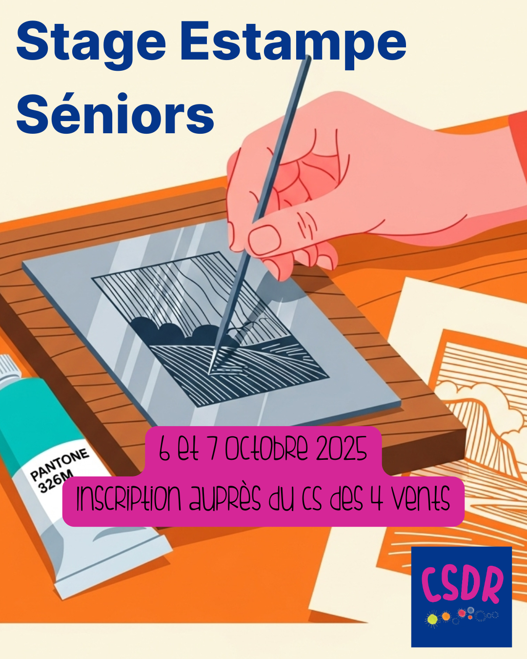 + de 60 ans ? Initiez-vous à l'art de l'estampe avec l'artiste Hélène Rivière dans le cadre exceptionnel de Moly Sabata. Un stage de 2 jours pour apprendre à graver et imprimer vos propres œuvres. Ouvert à tous. Places très limitées, inscription obligatoire.